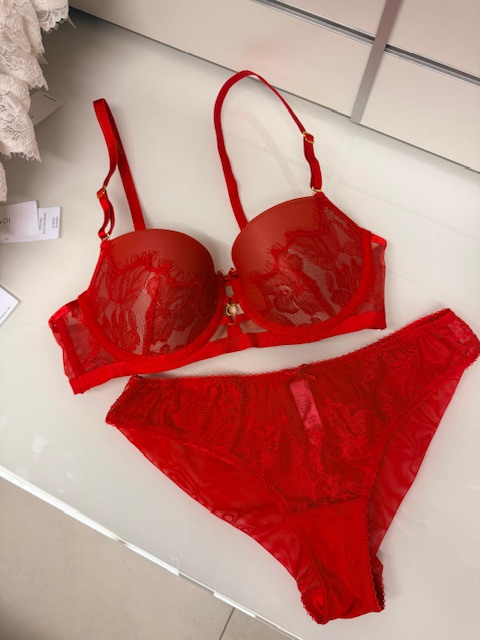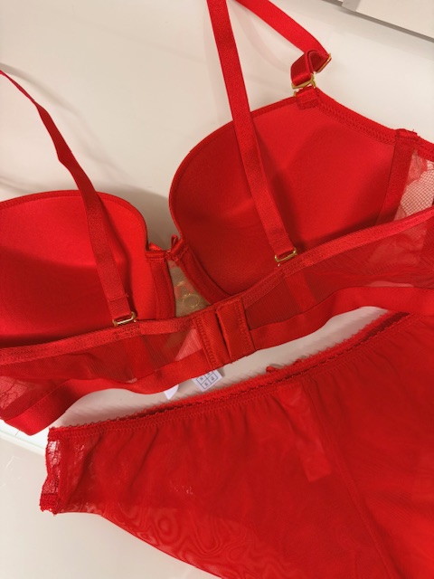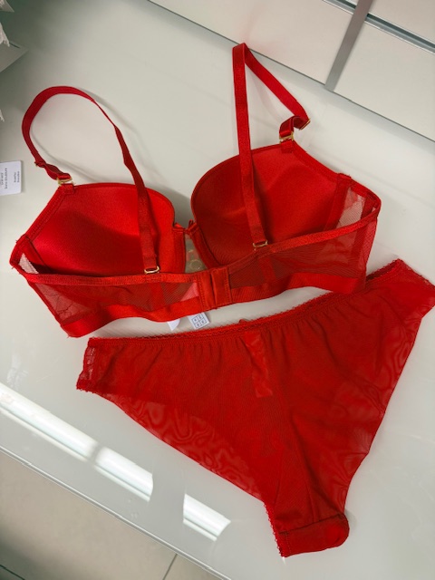 Raudonas apatinių komplektas su gipiūruRaudonas apatinių komplektas su gipiūru